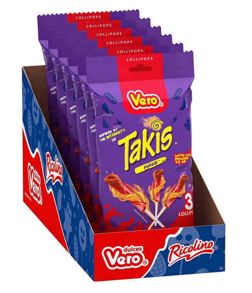 Vero Takis 3-PK Lollipop with Chili Pepper Powder 2.54oz (72g) x 6 Bags